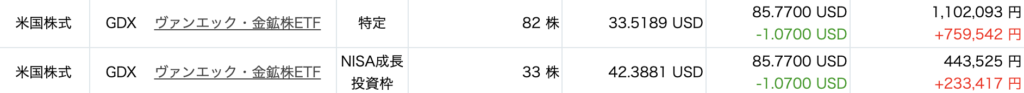 今年は金・金鉱株ともに好調でして、GDXの投資成績も良かったです。